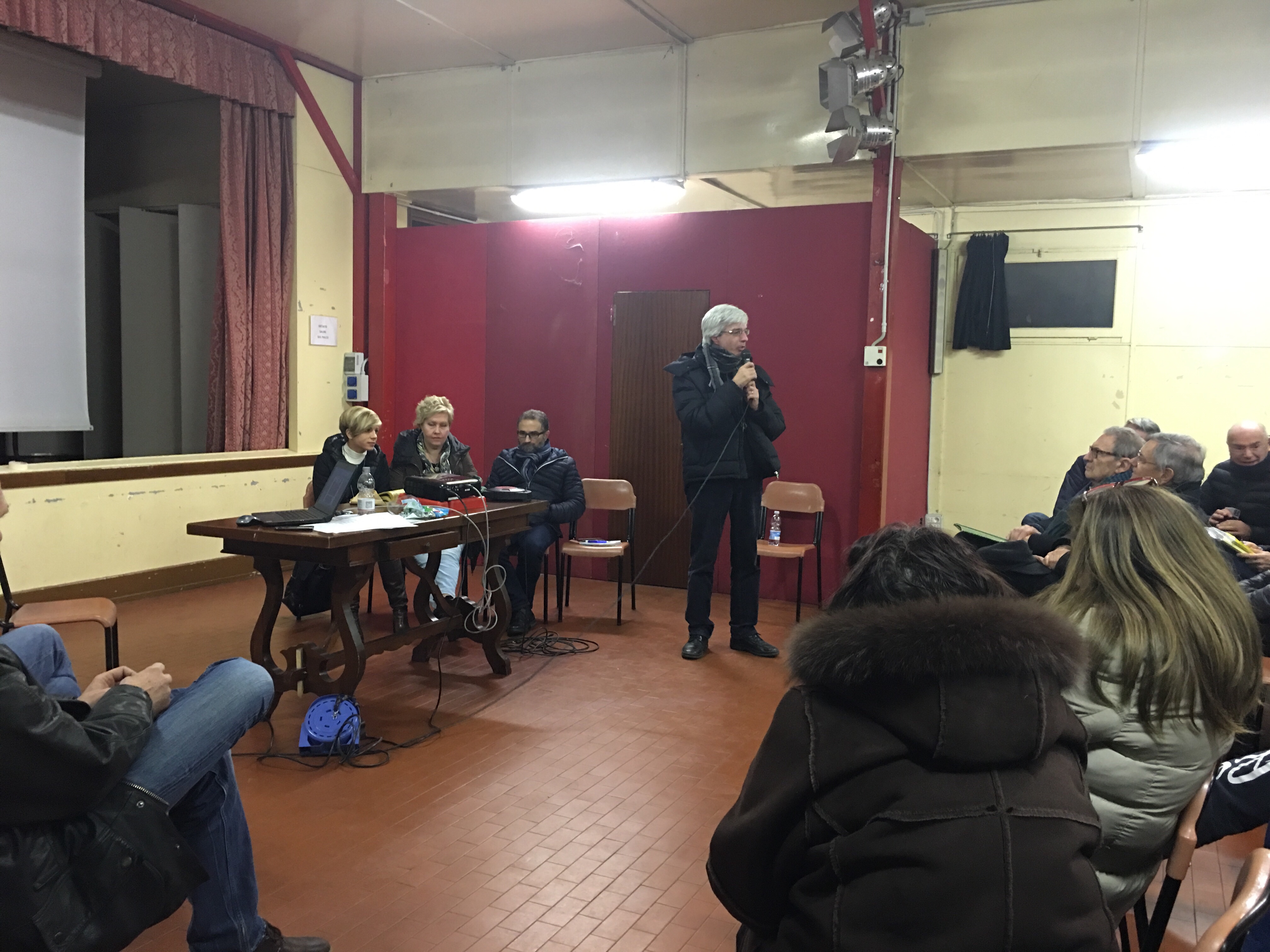 Marco Moschetti, presidente del nostro circolo, questa sera ha portato i saluti ai cittadini presenti in sala, e ha confermato la vicinanza con l’azione del comitato che, da più di un anno, si sta impegnando per portare a soluzione i molteplici problemi di inquinamento ambientale, reale e potenziale, che attanagliano la frazione e l’intera città.