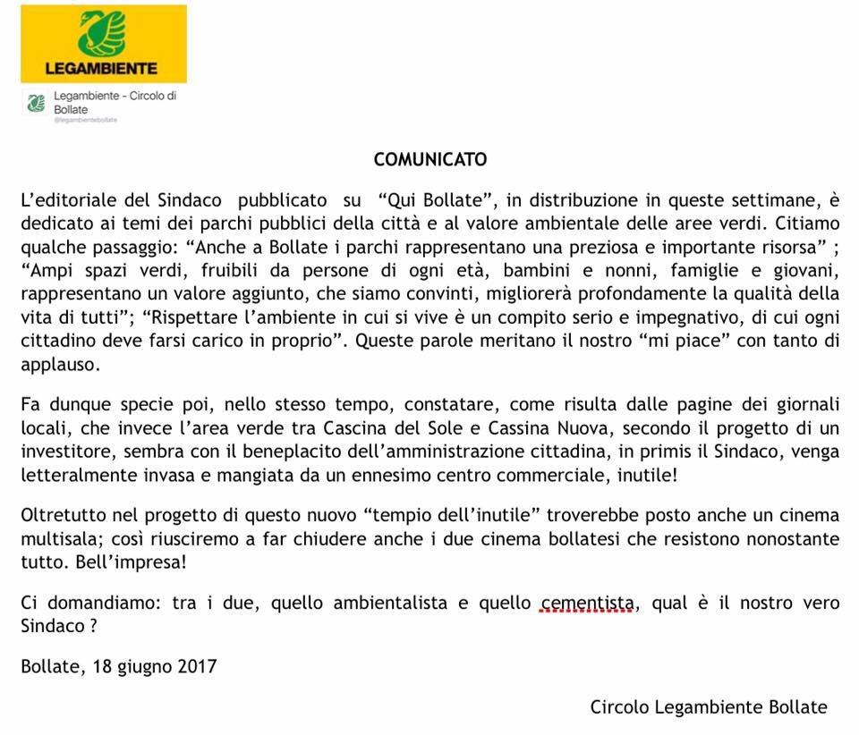 Ricordiamo infatti che, nel nostro comune, crocevia di tanti altri centri commerciali, è volontà dell’amministrazione comunale attuale costruirne un altro , a cui il nostro circolo ha già replicato con questo comunicato