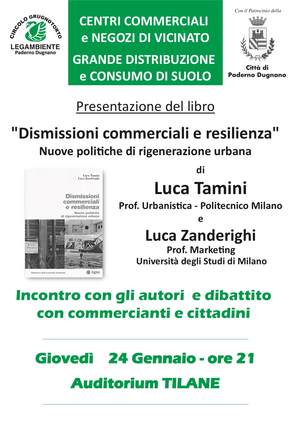 Segnaliamo questo importante incontro pubblico, che si terrà a Paderno Dugnano , giovedì prossimo, 24 gennaio, alle ore 21.00, presso l’auditorium Tilane , in piazza della Divina Commedia 3.
