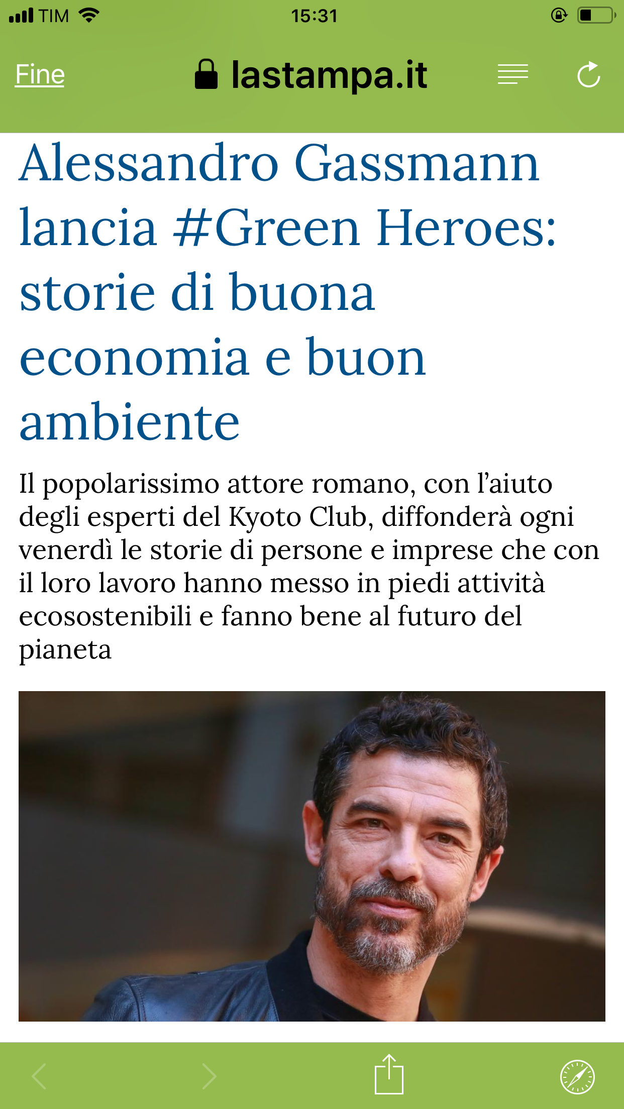 In attesa di #eclabollate, hashtag ed acronimo che richiama il tema di un importante incontro pubblico organizzato dal circolo bollatese di Legambiente per il prossimo 26 febbraio, alle ore 21.00, presso la biblioteca comunale di Bollate (Mi) e dedicato all’ economia circolare e alle tante possibili sue applicazioni nel mondo del lavoro, vogliamo invitarvi alla lettura dell’articolo pubblicato su la stampa.it dal titolo :”Alessandro Gassmann lancia #Green Heroes: storie di buona economia e buon ambiente”.