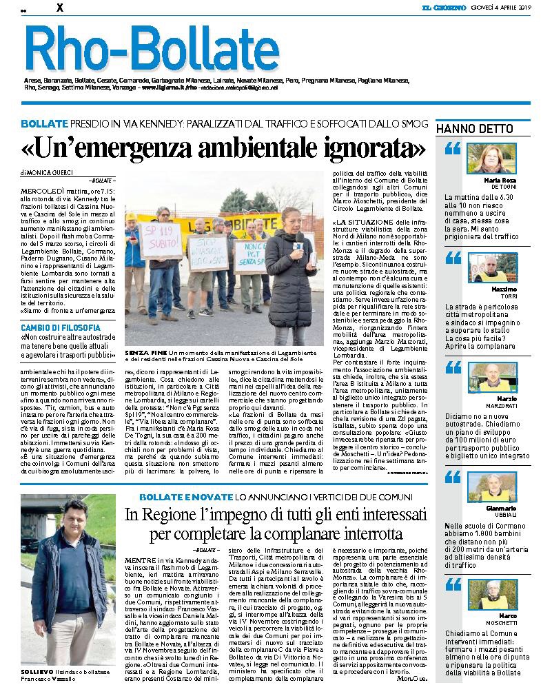 Ebbene sì! La mattina, del 03.04.2019 , all’alba, in via Kennedy a Bollate, il Circolo bollatese di Legambiente, guidato dal presidente Marco Moschetti ( nella fotografia di copertina), quelli di Cormano, Paderno Dugnano e Cusano Milanino , congiuntamente a Marzio Marzorati di Legambiente Lombardia, lo hanno detto, forte e chiaro, anche al tg3 Buongiorno regione Lombardia che la situazione determinata dal traffico veicolare, con i problemi della A52 ( la famosa “Rho-Monza” ) a Bollate e dintorni é disastrosa.