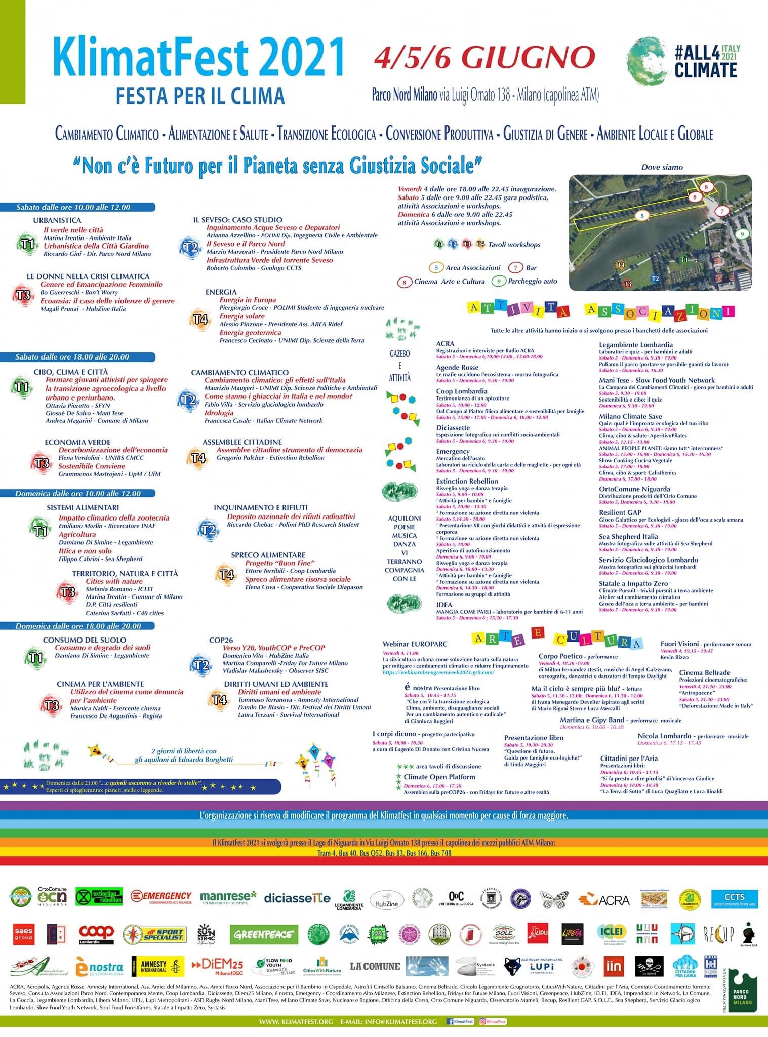 KlimatFest 2021 – 4/5/6 GIUGNO Parco Nord Milano via Luigi Ornato 138 – Milano (capolinea ATM)