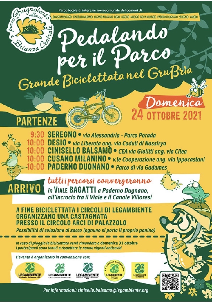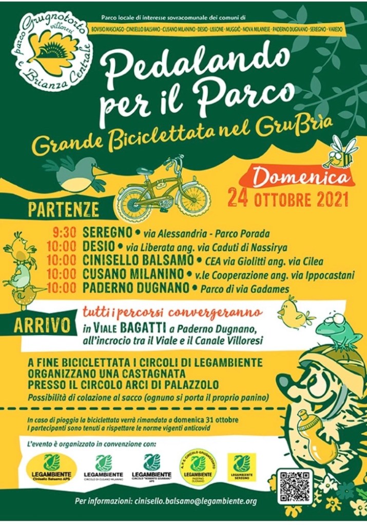 Per ragioni organizzative il Circolo di Paderno invita a prenotare la propria partecipazione alla biciclettata e all’eventuale ristoro presso l’Arci, entro il termine di venerdì 22 ottobre, scrivendo a legambiente.grugnotorto@gmail.com