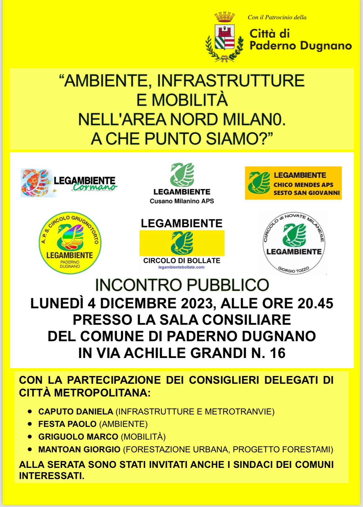 I circoli legambiente di Cormano, Cusano Milanimo, Sesto San Giovanni, Paderno Dugnano, Bollate e Novate Milanese, con il patrocinio della città di Paderno Dugnano, organizzano l’incontro pubblico: