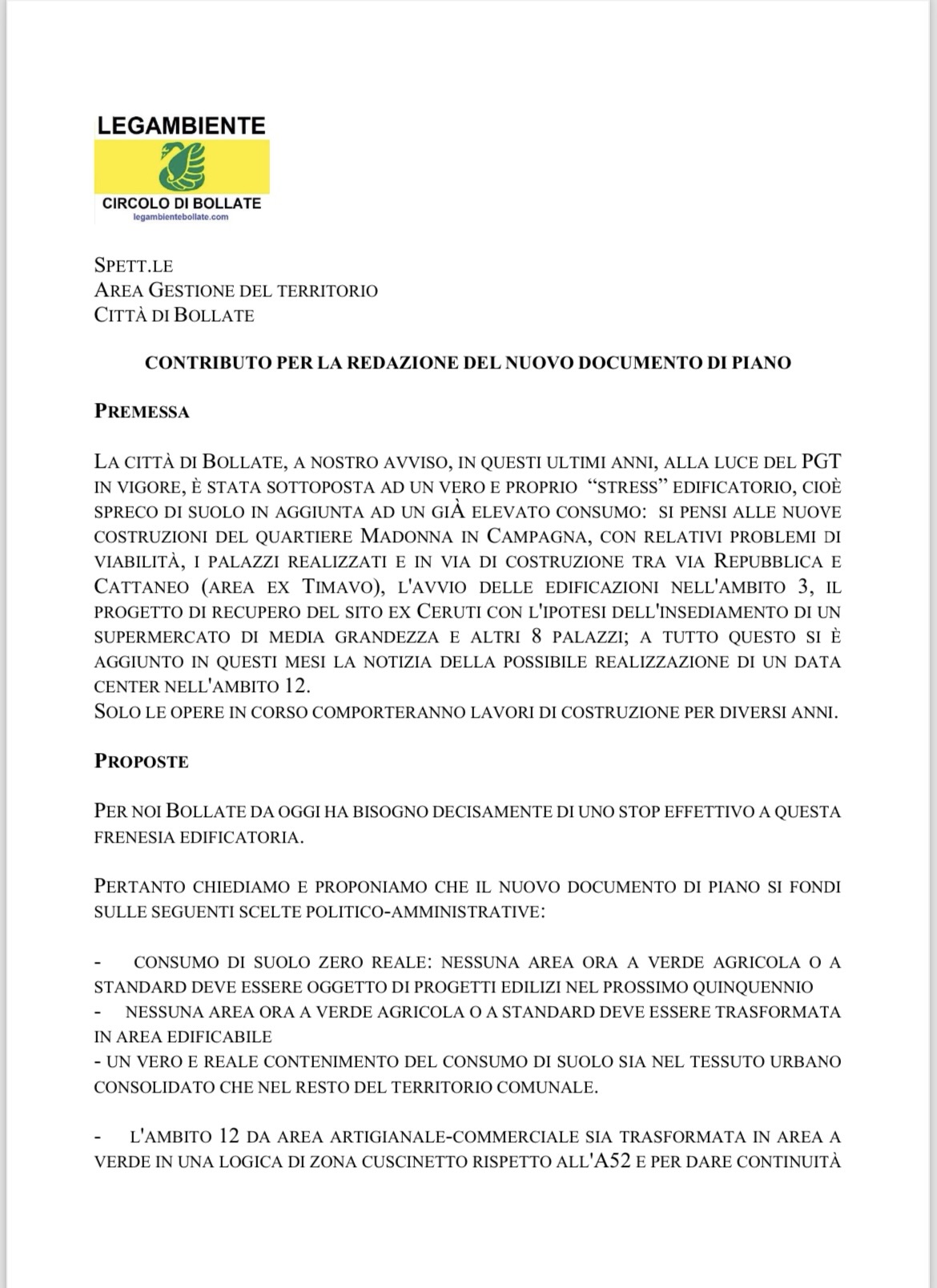 PERTANTO CHIEDIAMO E PROPONIAMO CHE IL NUOVO DOCUMENTO DI PIANO SI FONDI
