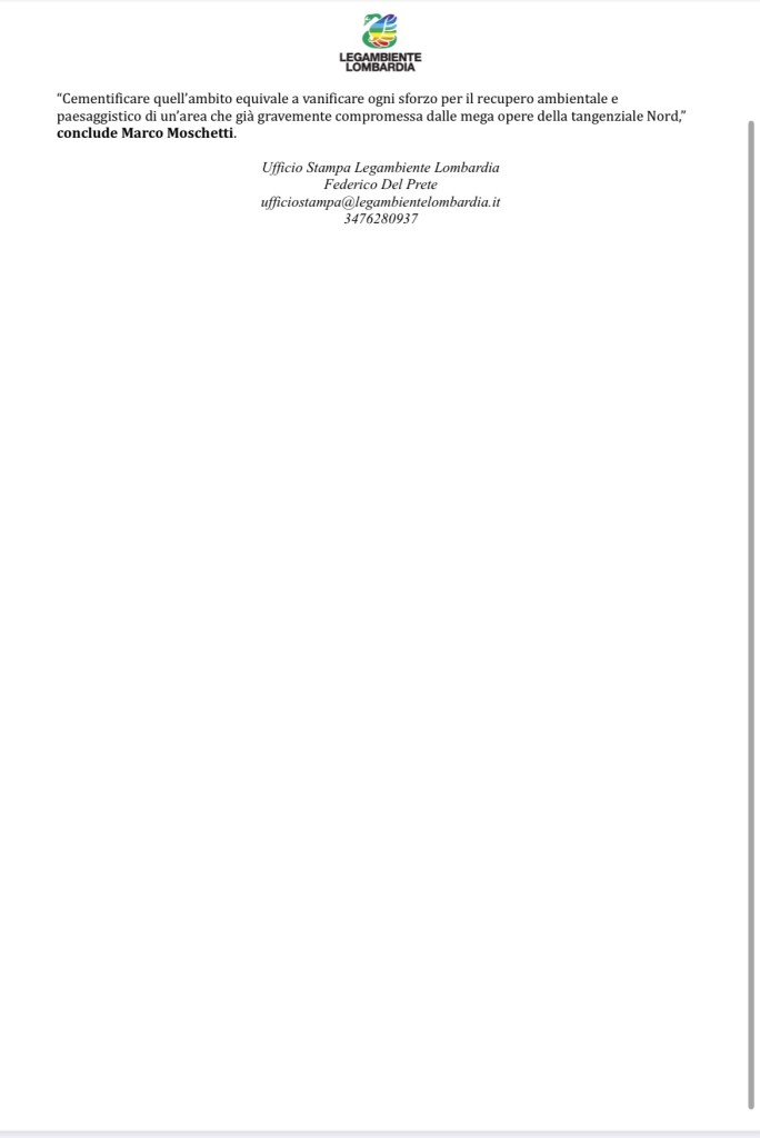“Cementificare quell’ambito equivale a vanificare ogni sforzo per il recupero ambientale e paesaggistico di un’area che gia gravemente compromessa dalle mega opere della tangenziale Nord,