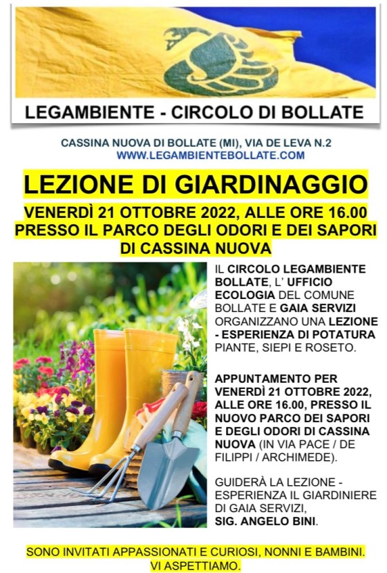 LEZIONE DI GIARDINAGGIO, VENERDÌ 21 OTTOBRE 2022, ALLE ORE 16.00, PRESSO IL PARCO DEGLI ODORI E DEI SAPORIDI CASSINA NUOVA … Altro