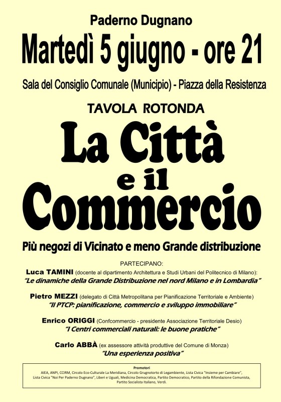 “La città e il commercio” – martedì 5 giugno 2018 a Paderno Dugnano