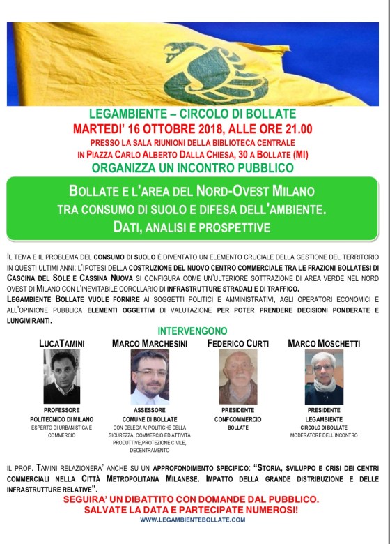 16.10.2018 – BOLLATE E L’AREA DEL NORD-OVEST MILANO TRA CONSUMO DI SUOLO E DIFESA DELL’AMBIENTE. DATI, ANALISI E PROSPETTIVE