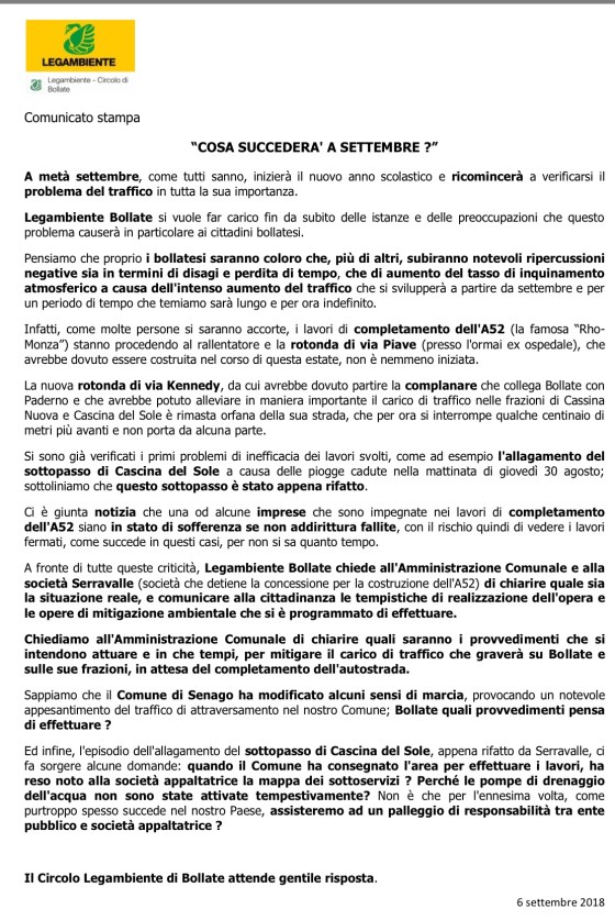 Nei giorni scorsi, il circolo LEGAMBIENTE di Bollate ha fatto pervenire, tramite P.E.C. , i propri suggerimenti e proposte in merito alla realizzazione del nuovo centro commerciale bollatese.