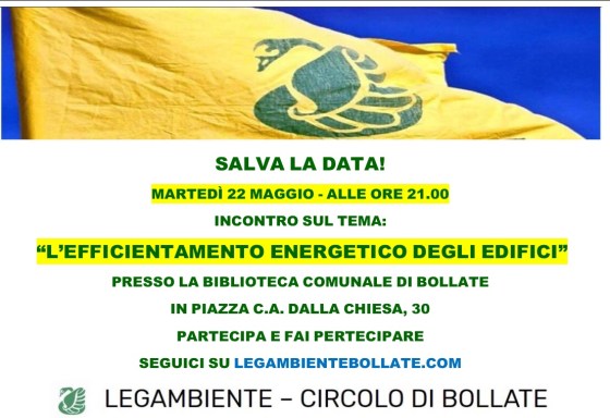 IL CIRCOLO LEGAMBIENTE DI BOLLATE ORGANIZZA UN INCONTRO SUL TEMA L’EFFICIENTAMENTO ENERGETICO DEI NOSTRI CONDOMINI E DELLE NOSTRE CASE. … Altro