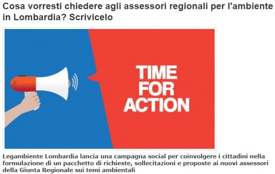 Time for action! Cosa vorresti chiedere agli assessori regionali per l’ambiente in Lombardia? Scrivicelo