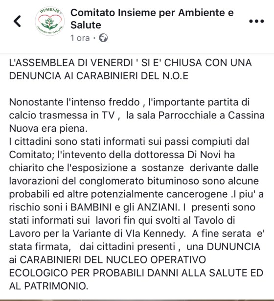 Comunicato del comitato di Cassina Nuova “ Insieme per ambiente e salute”